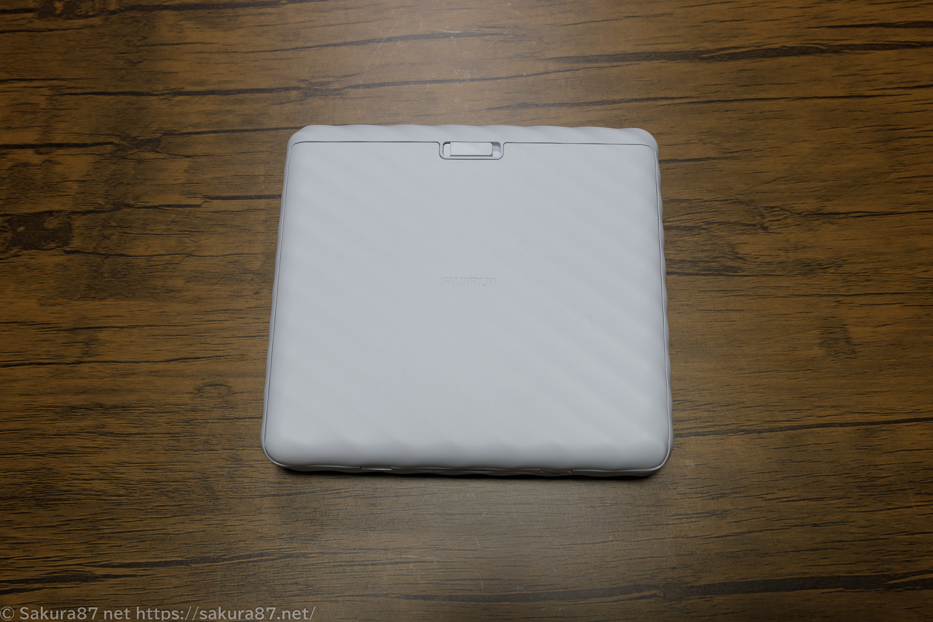 本体は両手サイズくらいでコンパクトです。昔流行ったポラロイドカメラのフィルムが出てくる部分だけ切り取ったくらい。