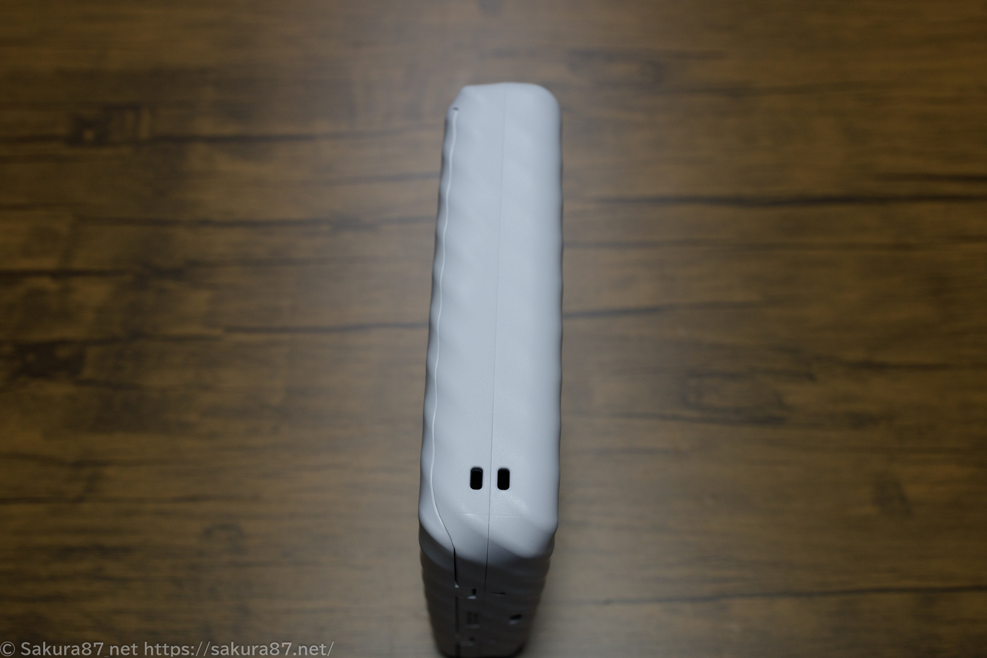 背面は充電用のUSBポート。規格はコンパクトながらもどこか懐かしさのあるmicroBタイプです。USBポート近くの穴はリセットボタン