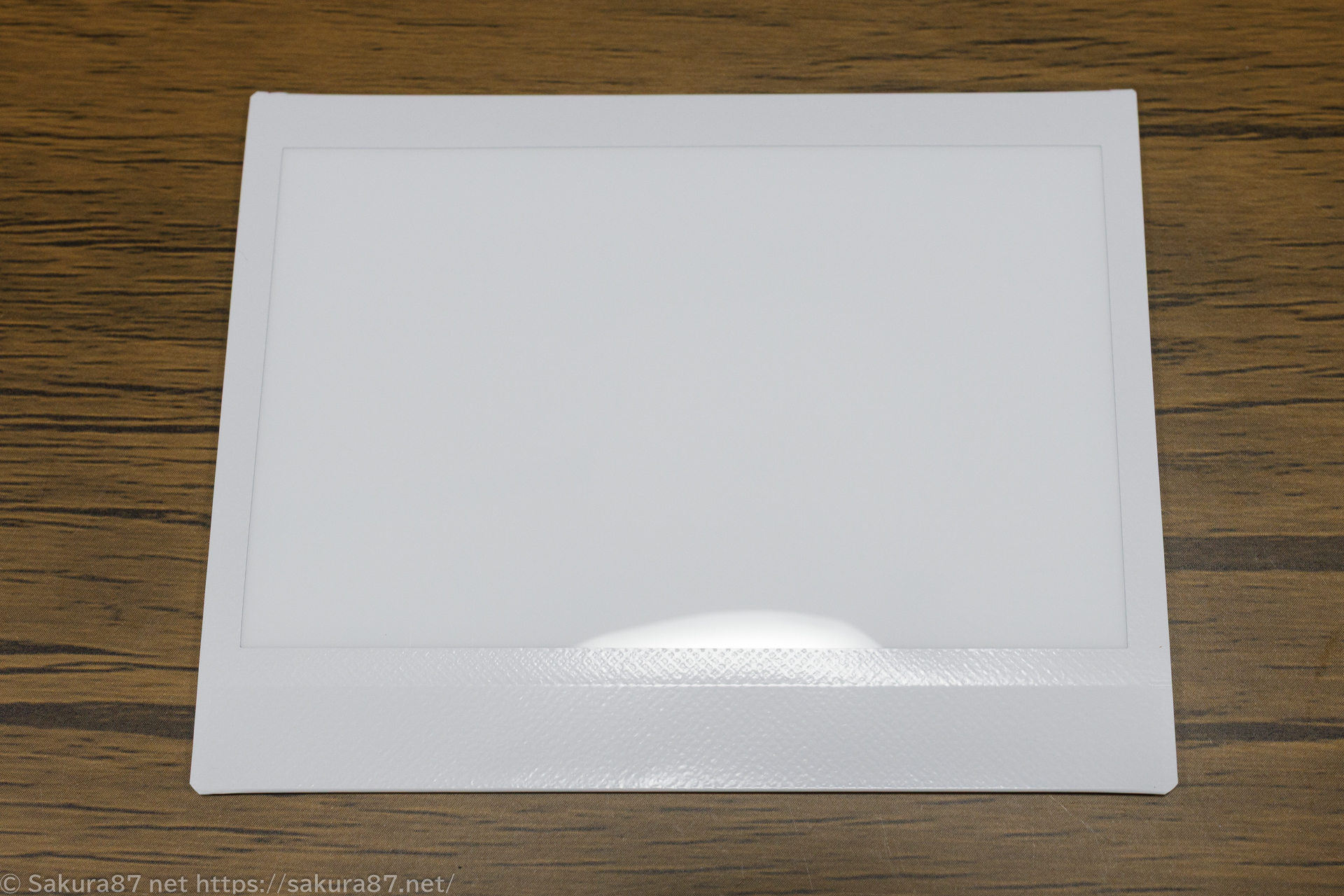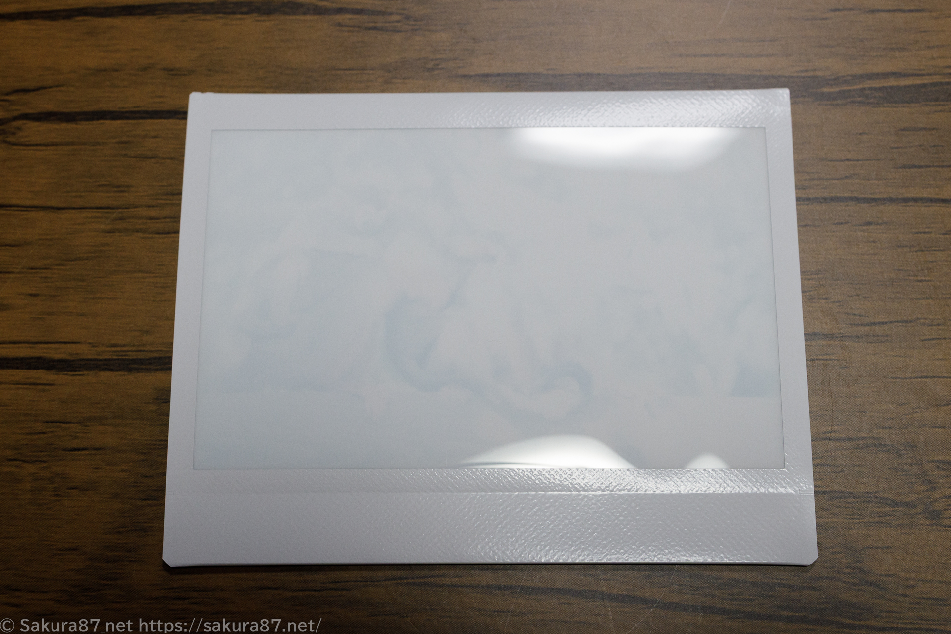 インスタントカメラのフィルムはフィルムの端に現像液が入っていて、排出時にローラーで押し出され、そこから徐々に現像されるので最初は真っ白です。