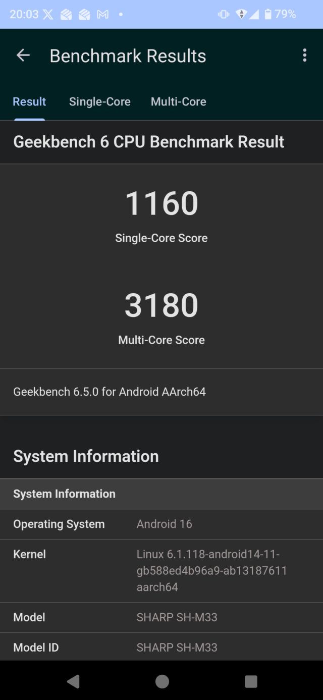 Geekbenchの結果はトータルで3000超え程度とハイ寄りのミドルレンジとして順当進化しています。