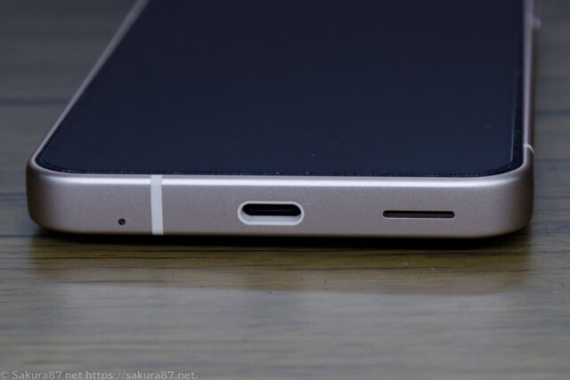 下部には中央にUSBポートと右側にスピーカーエンクロージャ、左に通話用マイクがあります。