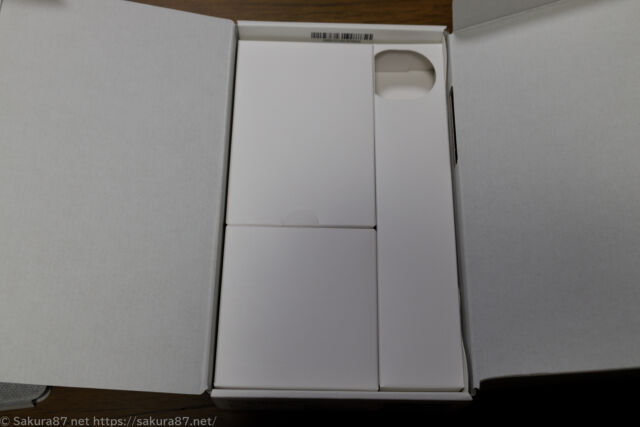 左側が本体、右側の上がクイックスタートガイドとSIM排出用のピン、下が充電器とケーブル。