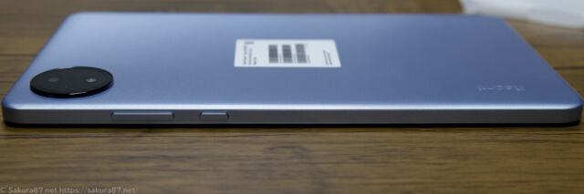 左側面は写真左(上)から音量ボタン、電源ボタン。
