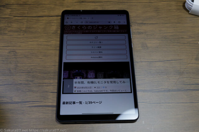 8.7インチは小さめの液晶ですが、少年マンガなどのマンガ単行本や、文庫本とほぼ同じくらいのサイズで表示されるので、案外便利が良いサイズです。本当にこのサイズのタブレットって少ないですよね。案外良いサイズなのに。